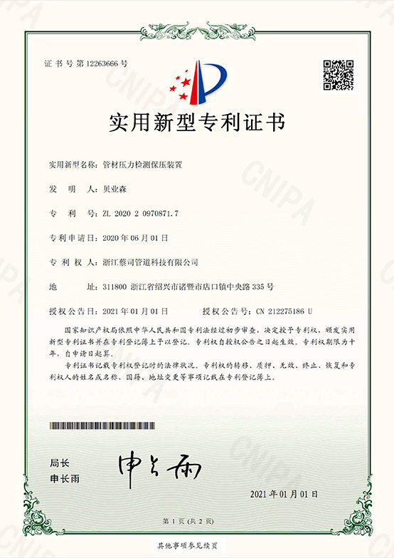 • PPR嵌銅管件衛生許可(kě)2022-2