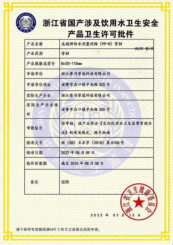 PPR管材衛(wèi)生(shēng)許可2022-1