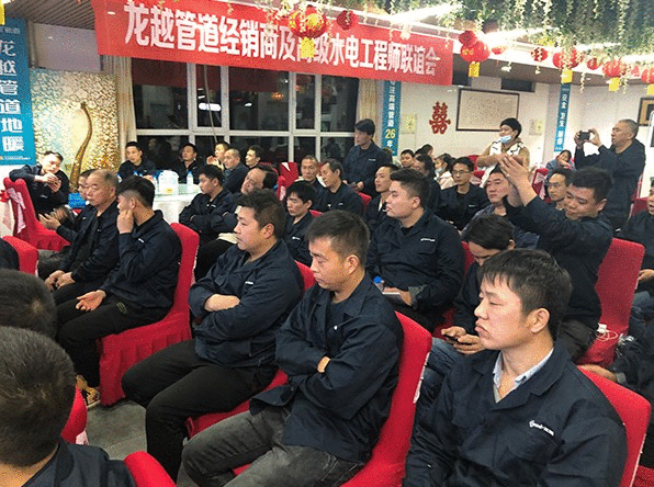 2020年11月1日,以(yǐ)“攜手前(qián)行、共創輝煌”為主(zhǔ)題的龍越(yuè)管道(dào)在河南汝州萬基(jī)家宴(yàn)酒(jiǔ)店隆重舉行(háng)。總公司領(lǐng)導、龍越洛陽、平頂山、南陽總代理、汝州經銷商以及來自汝(rǔ)州地區的(de)眾多龍越(yuè)管道水工精英齊聚一堂(táng),共話新征程,實現新(xīn)跨(kuà)越!